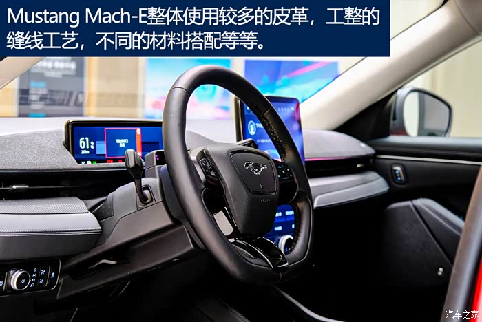 包括方向盘的握感和整体驾驶姿势、按键做工等都能明显让你感觉到这是传统车企的作品,我尤其喜欢方向盘上这个Mustang标识,太有感觉了。