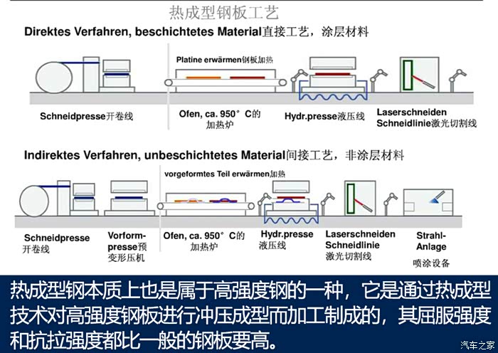随着人们对生活环境质量要求越来越高,国家对汽车的环保节能也要求越来越高。据试验证明:汽车重量降低1%,油耗可降低0.7%。车身轻量化一直是各整车厂需落实的重要课题。在同等重量下,高强度钢能很大程度上提升车身强度,改善碰撞安全性能。但是高强度钢成形困难、回弹严重,导致工装制造、调试难度非常高,热成型钢的出现完美解决了以上两大难题。