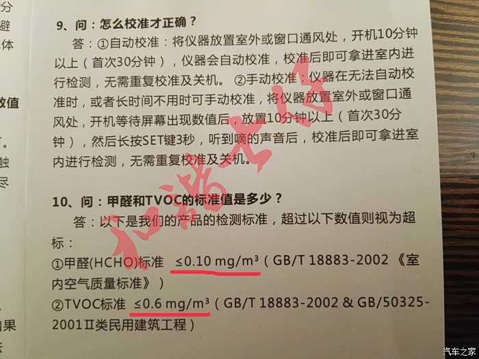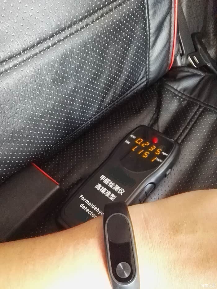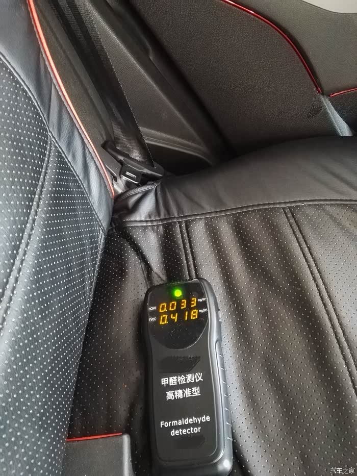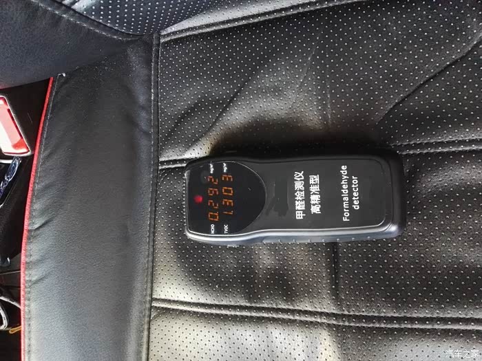 注意:个人车辆的后期改装程度不同,所以测试结果都是不同的。我的车内装了全包围的PU坐垫,气味较大,因此我感觉是超标了,所以平时用车我都是开窗户跑的。本次测量仅代表我的车内空气数据,不代表原厂车内数据。