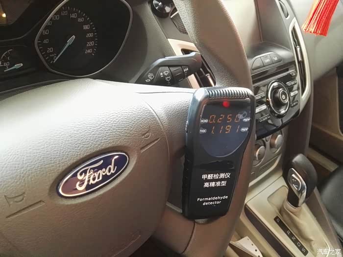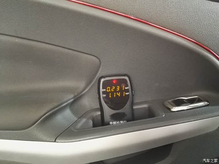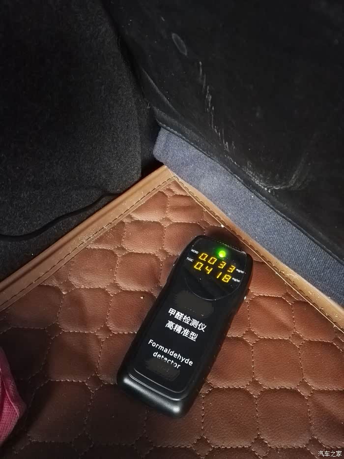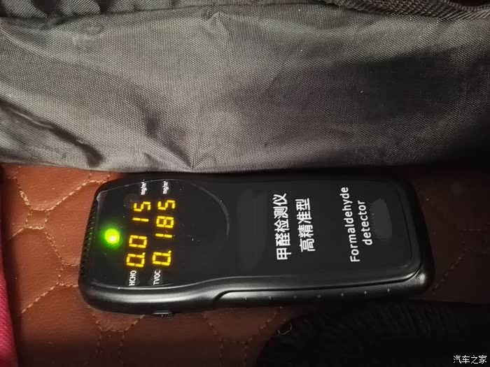 等了15分钟后,开车门查看数据,甲醛超标,0.235了,超标2倍多!跟我这个后来加的水货PU皮座套有关系吗?