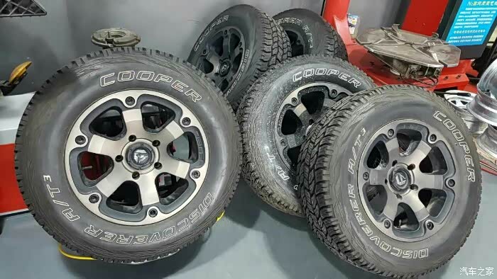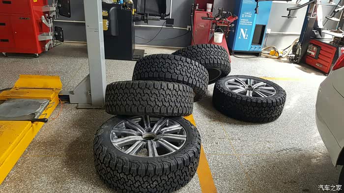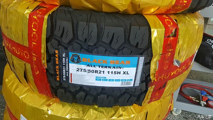 今年偶然看到有完全适合lx570的21大脚的越野胎,说是美国品牌黑熊胎,不过度娘有人据说是国产的,搜了一些看评价还行,先把原来的18轮毂轮胎全套便宜处理给网上一个爽朗的朋友了,然后某宝订了五套。就不说商家不愉快的配货历程了,轮胎到了好多天,今天才有时间过去安装完毕。