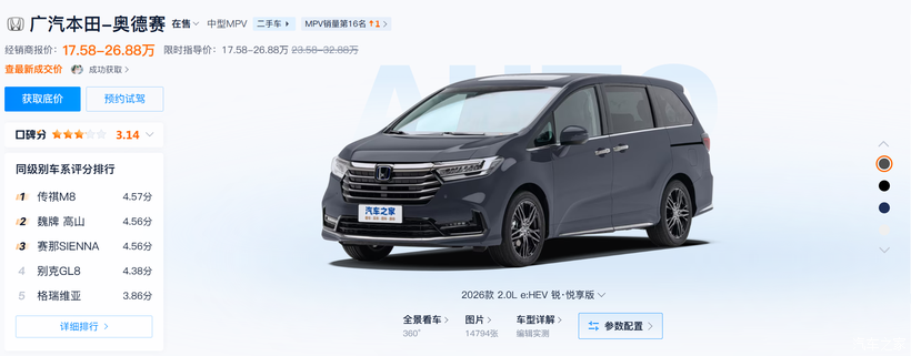 我最近在看车,刚好刷到广本新出的2026款奥德赛,感觉价格挺有冲击力的,赶紧来和大家分享一下。
