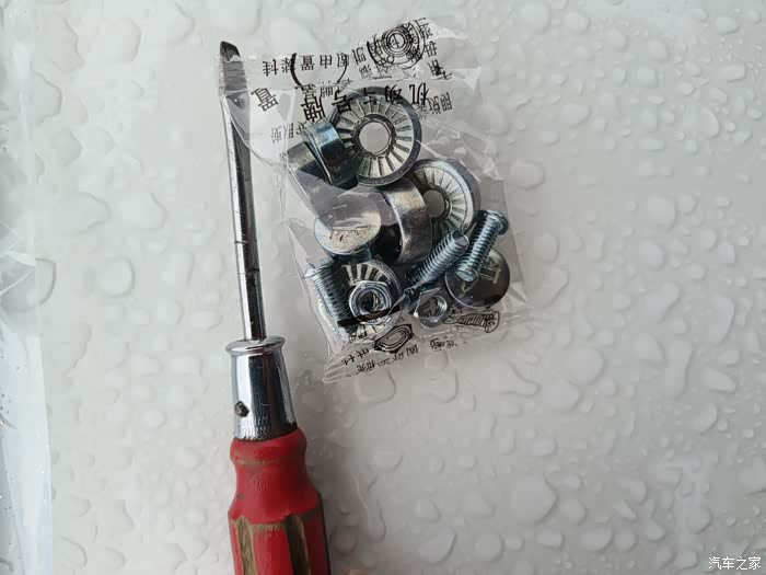 5、给自己爱车安装铁牌。需要一个一字剪刀,动手能力强的,自己可以轻松装好。也可以花100让场地安装师傅安装。