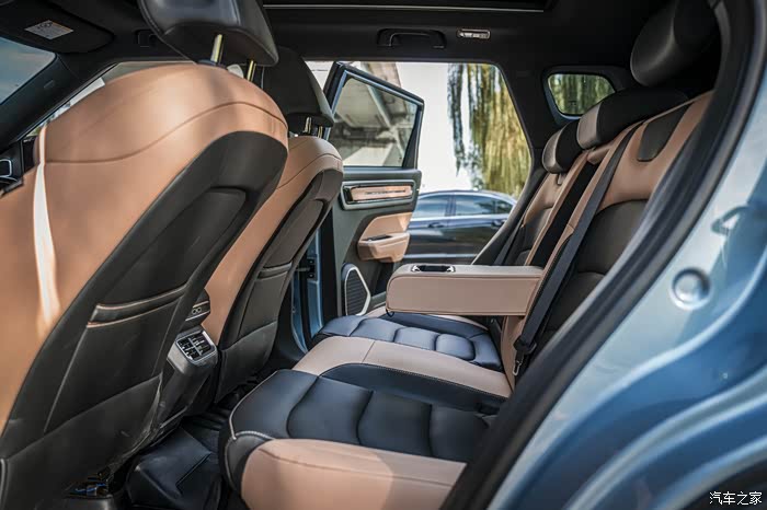 第二排空间也还不错,两个人或是三个人都OK,中间的扶手放下来可以放杯子。我的身高是172,坐后排腿部跟头部都有两拳多的空间。