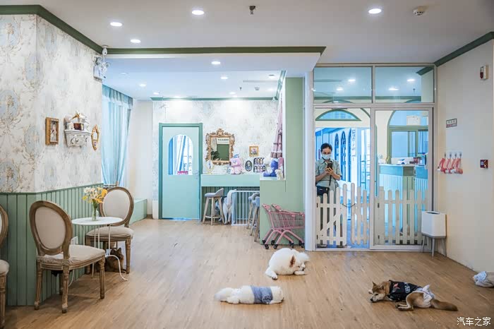 店里是分成了两个区域,一个是纯狗狗的区域,另一个就是包括猫猫羊驼什么的。店内的布景很温馨,黄绿主色,让人觉得很舒服。小动物们都是趴地上或者椅子桌子上,很可爱。虽然小动物很多,但是几乎没什么异味。