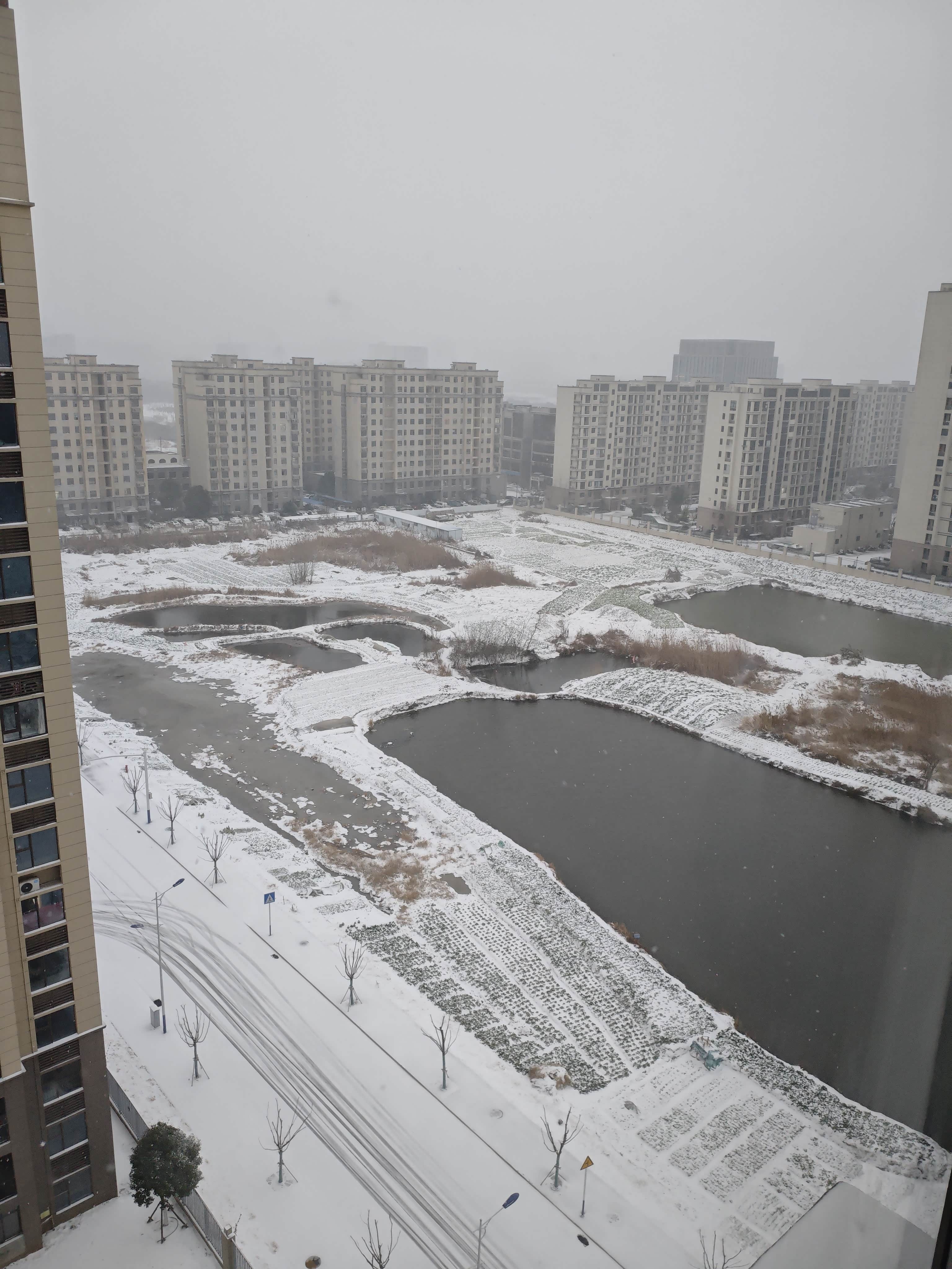 昨天下午风刮的历害起来,晚上八点开始下小雪了,不到九点雪下大了,路边都一片白了,赶紧把胖8开到地下车库去,不然早上要扫雪除冰了。今天早上起床打开窗帘,太美了,不看了,还是早点出发吧,利用吃早饭的时间,用远程控制打开空调,方向盘加热和座椅加热,上车热热的,挺好,出地下车库刚到路面上,我试了一下刹车,不滑挺稳,地面上的雪的厚度大约5厘米,
