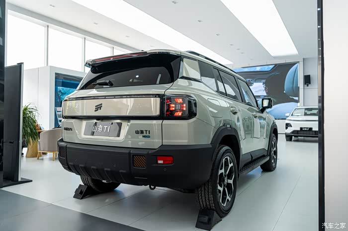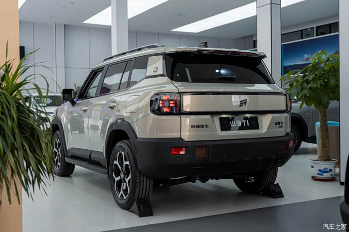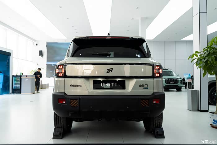另外,捷途山海T1的尾部采用了一个收腰的设计,上面稍窄一点下面稍宽一点,也算是紧跟当下的潮流,它虽然是一个硬派的方盒子车型,但也追求一定的动感,有一个小小的鸭尾,后面是个熏黑的灯带,不过灯带里面没有贯穿的灯,所以没办法点亮,主要是起到拉高颜值的作用。也提供多种车身颜色,其中的鎏沙金专属色更是很有特色。