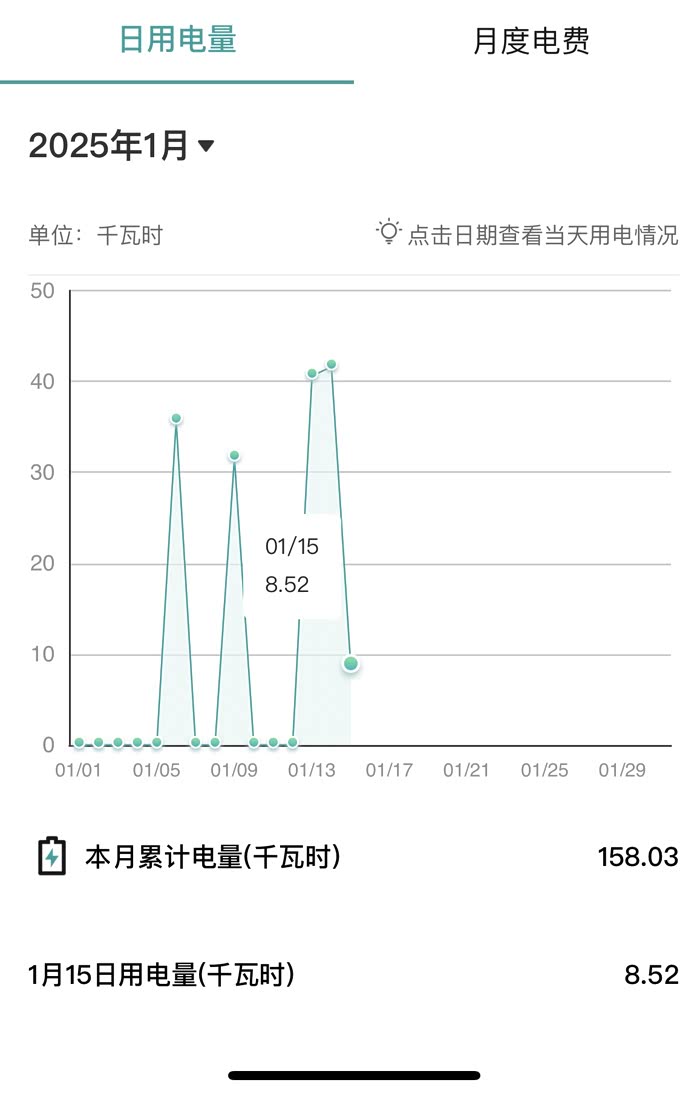 充电前车辆显示剩余电量43%,按照电池容量计算应充39.2度,第二天充满后深蓝app显示充了47.05度,国家电网显示用了8.52度,是因为跨天了吗,可是16号也没显示用电呀,实际扣费23元,23/0.47=48.9度 充电损耗大概17%+4%=21% 充电桩到电表线距70米,刚开了100多公里回来排除凉车温度低。 夜里气温大概-4度,这损耗是因为电线距离长 半夜电池凉下来后给电池加热的损耗吗