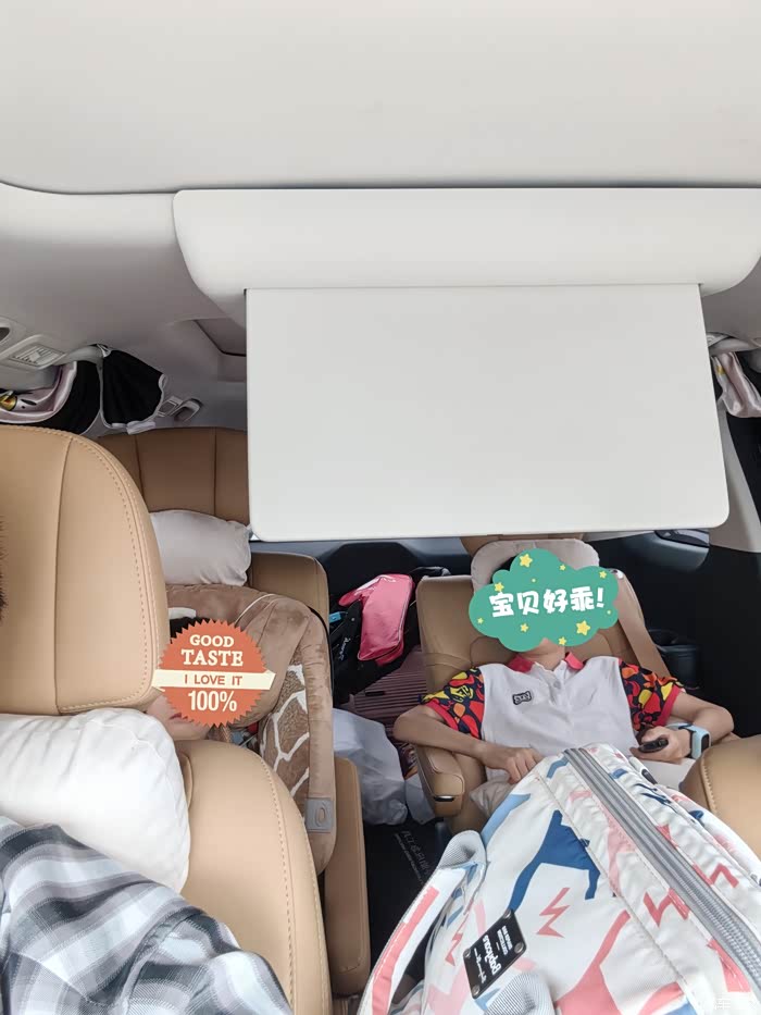 这车虽然只有4.92米长,1.9米宽。但是车内空间真的没法说!我毫不吝啬得说,这车的得房率是所有mpv中排名前三的!其他所有新势力mpv都比不上😄😄尤其上周末试了朋友的L8,尺寸都快比我的车大一圈,但是里边空间不如我的。尤其后备箱更是只能放2个20寸行李箱🤣🤣最最值得赞的是大四座模式,最近让我儿子试了一下,他说用来睡觉看电视真好。。。