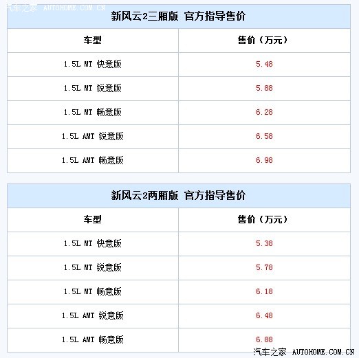 动力方面,新风云2并没有做出变化,依旧搭载的是1.5升发动机,该发动机最大功率109马力,峰值扭矩为140N•m,与之匹配的是一台5挡手动变速箱。根据之前的报道,新车还有望加入AMT自动挡车型。