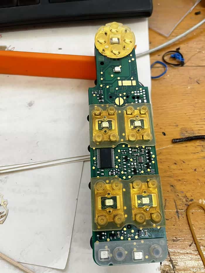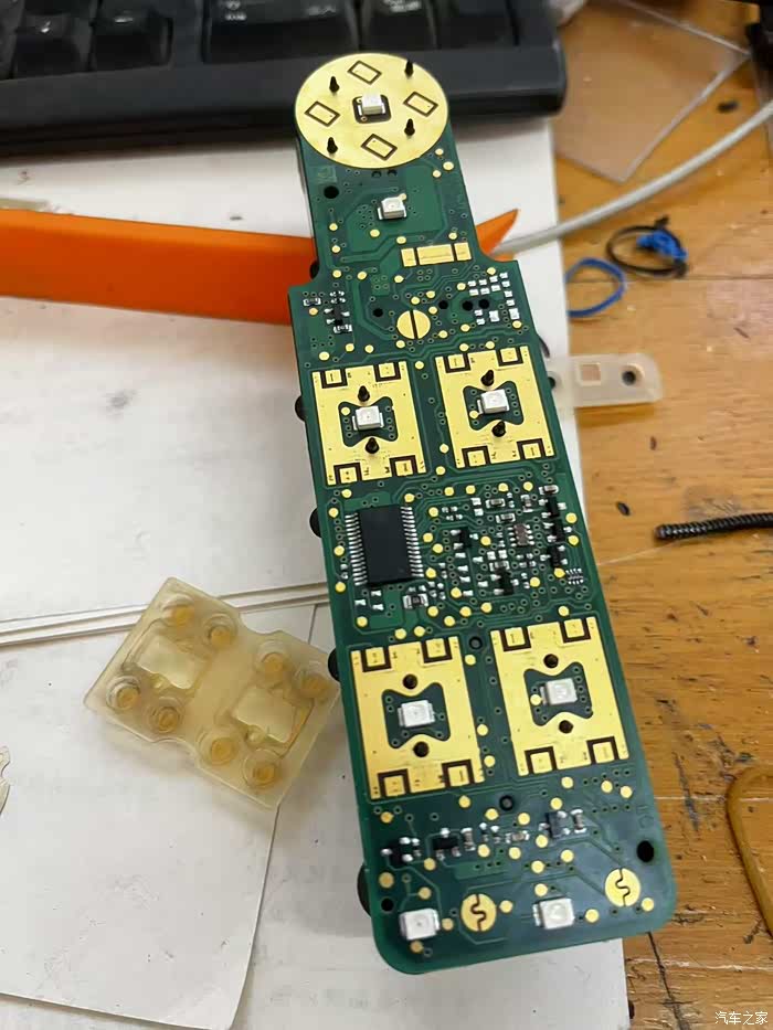 既然其它三个可以处行控制升降,说明其它三个车窗电机均无问题,开始怀疑主驾控制开关有问题,拆出后清洗复位,问题依旧。