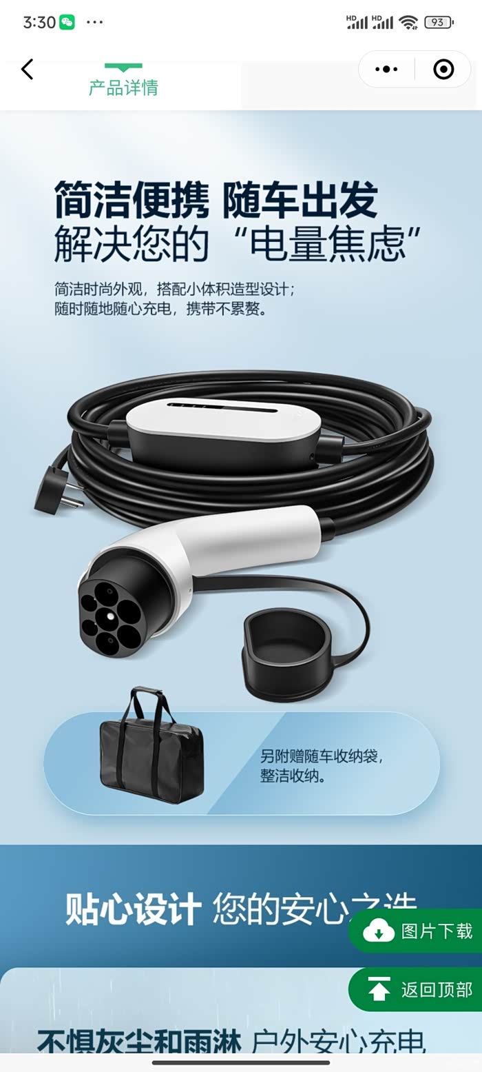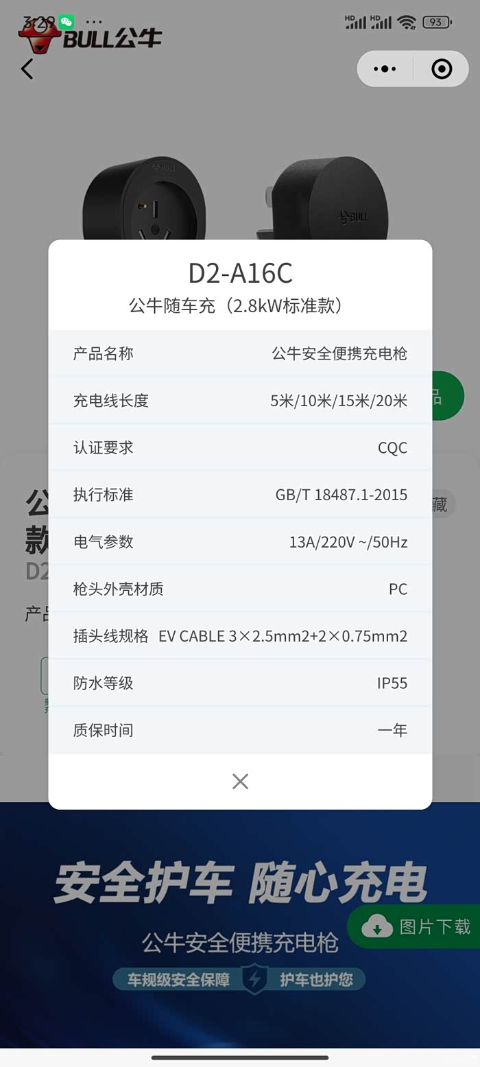 我是用随车充给猛龙充电,随车充是京东买的公牛随车充,基础款D2-16C,10米线768元,随车充上面没有停止充电的按键。原本想买哈弗商城的随车充,但因为线太短,所以选择公牛的随车充,因为没有固定车位,线长一些充上电的可能性大些。