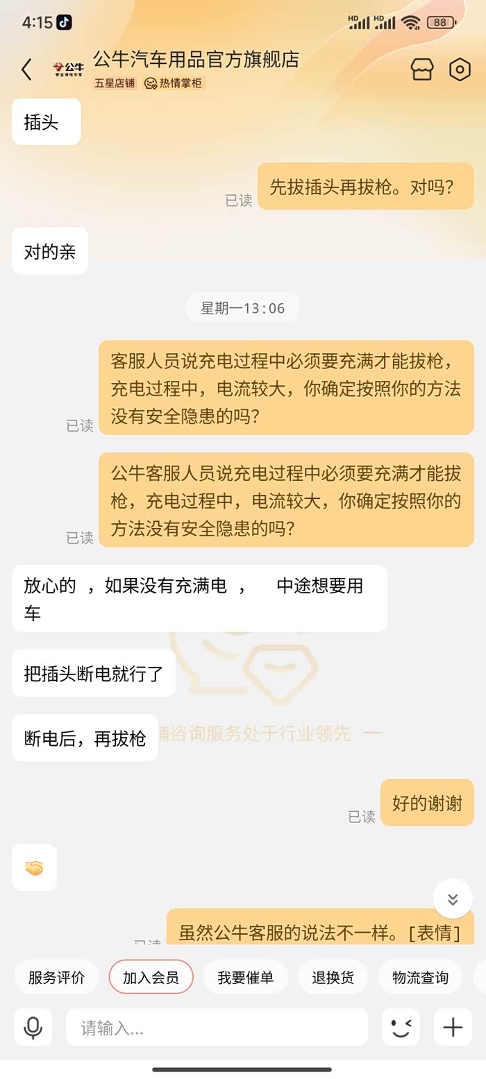 公牛官方客服回答,未充满不要中断充电,直接拔插头和拔充电枪都有安全隐患,恼羞成怒的我指责公牛为什么要生产这种有缺陷的产品,随后在客服一通官方套话中不了了之。