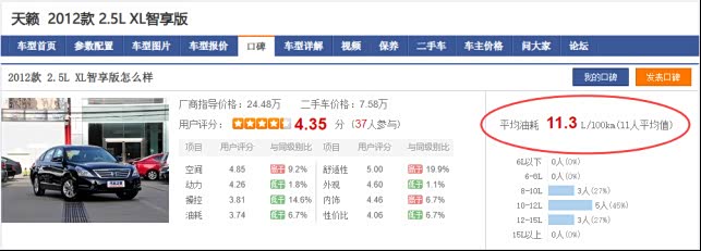 不过,考虑到地区之间以及不同油站之间的油价差异,用每公里油费做比较参考性不准确,所以统一用百公里油耗进行比较。