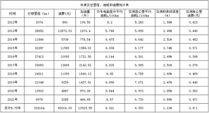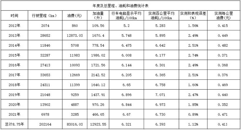 2、省油高手:20.2万公里实测平均百公里油耗6.393L