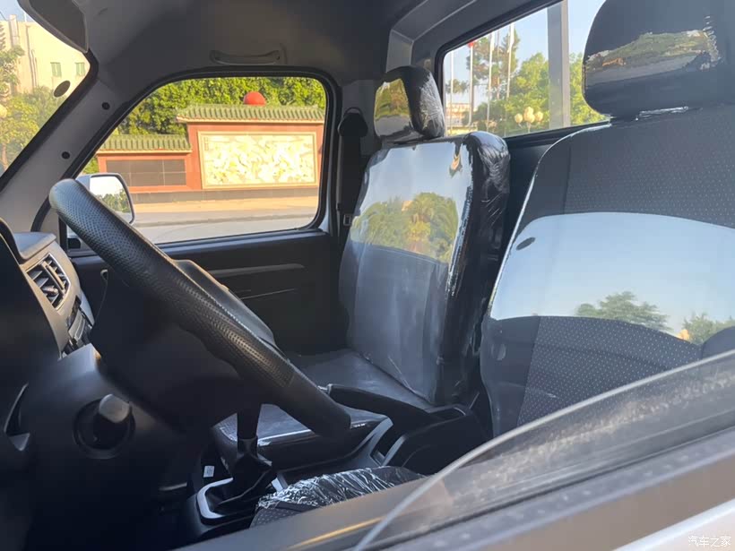内饰方面,中规中矩,里面麻雀虽小五脏俱全。炭黑色的设计,比较耐脏,比较适合拉货的我们。空间上装两个大汉绰绰有余,而且我身高180,坐在里面距离车顶还有一定的距离。就是座椅偏单薄,如果讲究舒适感那需要自己去买个靠枕。