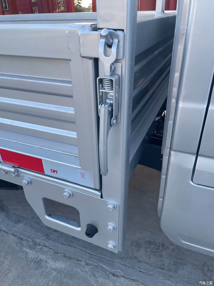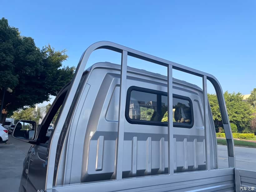 外观上车子整体为银白色,大方而且显眼。车斗长三米四,宽一米七,空间比较大,不会局限于只能在市内送货。车身四周有锁扣,也贴有反光条,给行驶过程又增加一点安全。