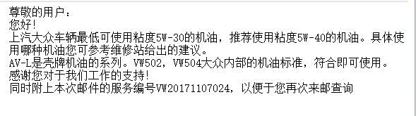 上汽大众的官方回复如图。