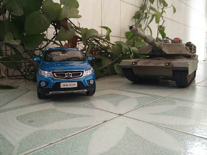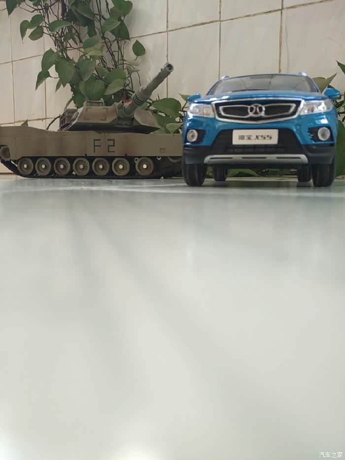 绅宝X55在M1A2面前毫不逊色,更加耀眼夺目,外形线条优美,肌肉发达,曲线感十足,配上年轻的蓝色,更加耀眼,X55完胜。