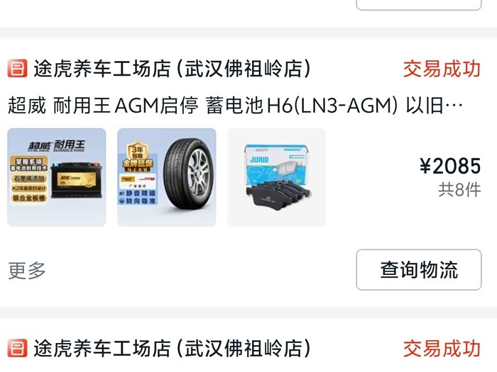 原本是想着就花个两三百做个简单小保养的,结果换电瓶,刹车片,两条轮胎花了2085元,保养买的两次套餐666,相当于一次花费333元,所以一共花了2418