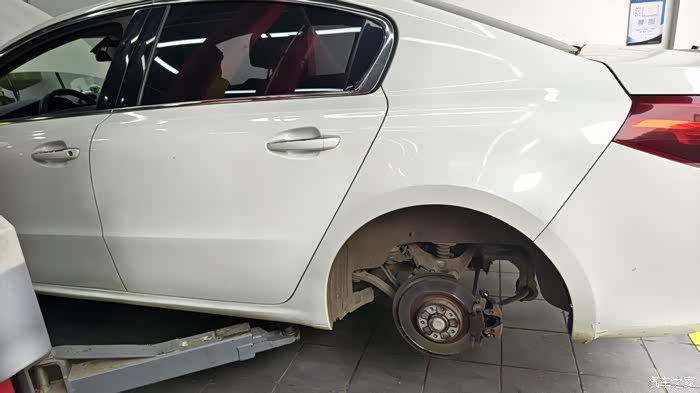 更换轮胎时用上了举升机和一些轮胎拆卸工具,先将轮毂卸下,更换刹车片,将旧轮胎拆卸后,再在机器上安装新的轮胎,并用充气泵给轮胎补好气,随后安装至车上