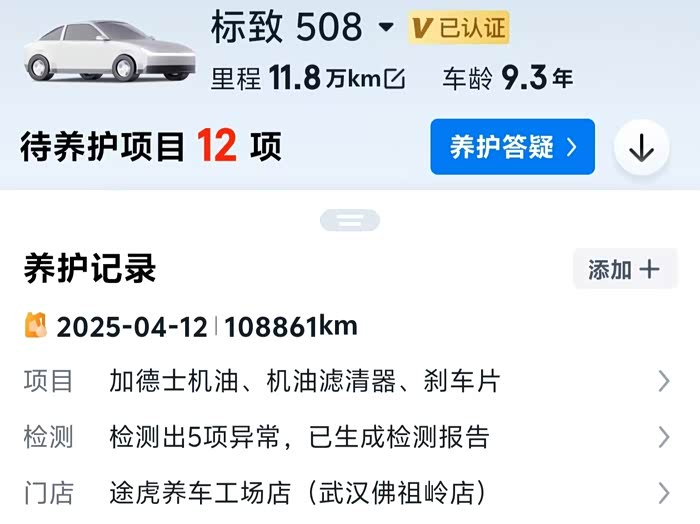 2016年提了2015款1.6T至臻版标致508,不知不觉它就已经陪了我九年了,行驶里程也接近11万公里,25年以前基本都是一年两次保养,到了25年,由于年行驶里程较少,所以决定一年仅做一次保养