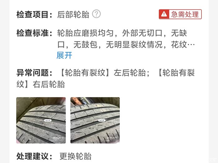 买完套餐以后,店里就先开始给我进行全车检查,通过店里的检查,查出来电瓶寿命低,轮胎裂纹,刹车片到极限等问题,这些东西对于车辆来说还是非常重要的,所以我也没有想着要省这个钱,当场就同意了他们的报价单,同意更换这些配件