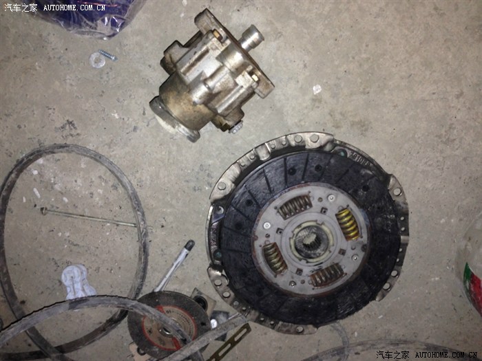 坏了需更换的配件,上面是转向助力泵,一个要500多,下面是离合器摩擦片和压盘。