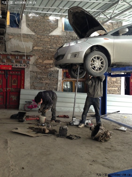第二天爬起来,便离开县城开始找修车的地方。记得昨晚快到县城的时候经过了一片修车的地方,于是掉头往回找。在一个当地热情的司机帮忙下,找到了一家湖南老乡开的专门修小车的修理厂。隐隐有种不好的预感,是的,检查后发现转向助力泵坏了,没有配件,需要从成都发。至少要第二天下午配件才能到。而且感觉离合器也不太给力了,估计是摩擦片烧的差不多了。索性一起换掉。更换转向助力泵、助力液、离合器摩擦片、离合器压盘,配件加费用1800大洋。教训呀!值得庆幸的是,安装了护板,底盘其他地方和管路都没有问题。