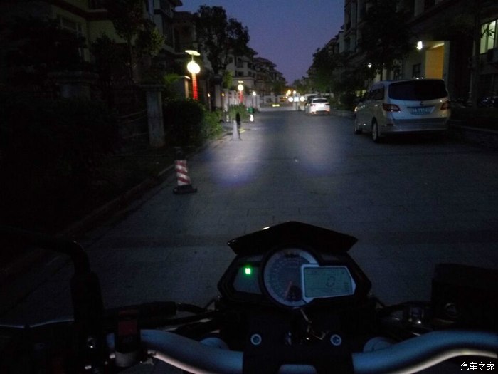 调整后,小灯照的位置好多了,单是开小灯就很不错了;开小灯和远光灯,这个最为满意,够远,也够亮,和死活不打近光灯的家伙可拼一回了;最后的图是近光灯与小灯的效果,也不错哦。爆闪的效果拍不出来,但是,那是相当的给力的。