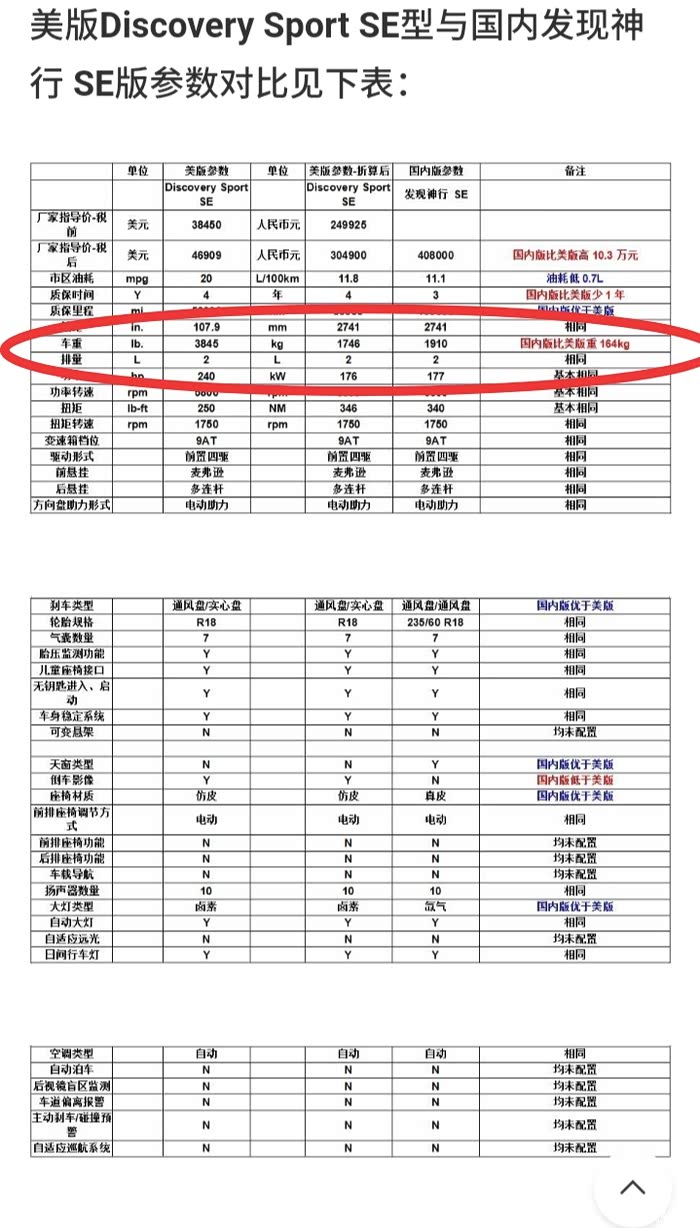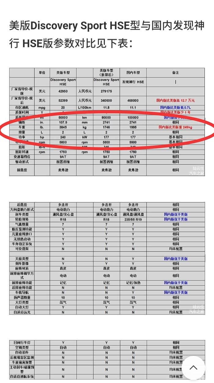 还是轻量化做的不够,什么年代了,别说因为用料足。别的品牌不说,就说自家品牌,都是英吉利2.0T发动机,4.6米不到的发现运动版自重超过2吨,定位和售价都更高,4.81米长超过2米宽的揽胜星脉还不到1.9吨,而且星脉还是更重的纵置变速箱和全时四驱系统。