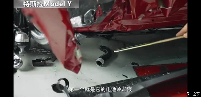 2、 两车纵梁起到了吸能作用,极狐纵梁相对完好,特斯拉纵梁损毁更严重些。