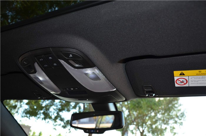 上面就是控制全景天窗的按钮和两条竖型的灯。还有防眩目内视镜