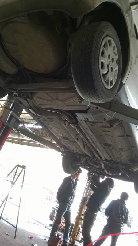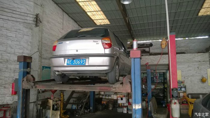 拿机油和机油格到汽修店换,小车底盘低,自己很难钻进车底换。而且当时这车很漏油严重,因为废气管堵了。