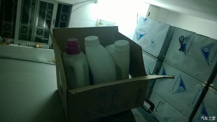 左是空瓶,中是2L防冻液,右是没开封4L防冻液