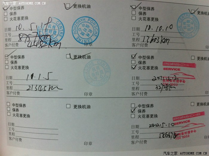 保养记录!其中第二次保养的时候换了刹车片,最后一次保养的时候换了轮胎。
