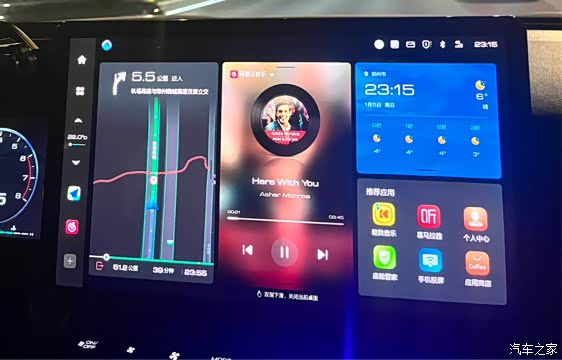 整个安装过程大概花费了三十多分钟,完全完成车机的升级安装之后,系统焕然一新,这次升级最大的亮点就是车机交互界面的优化。打开主界面后,我发现UI设计更加简洁直观,操作逻辑也更流畅了。尤其是常用功能,比如导航、音乐、蓝牙电话。