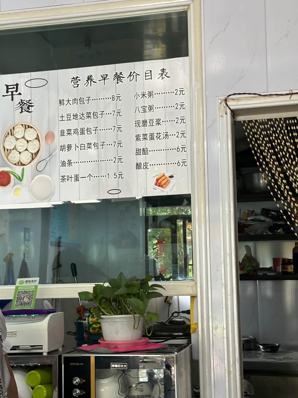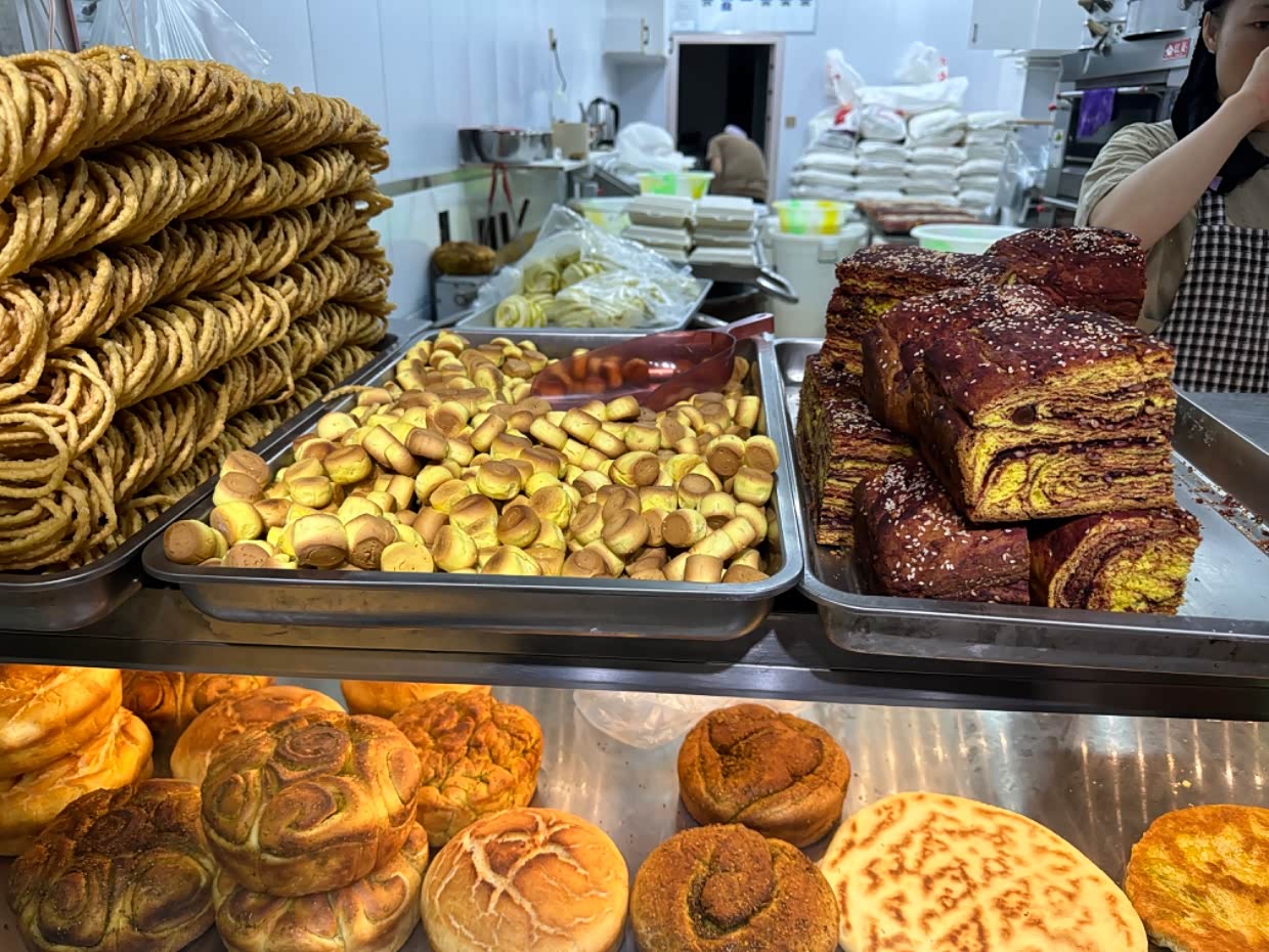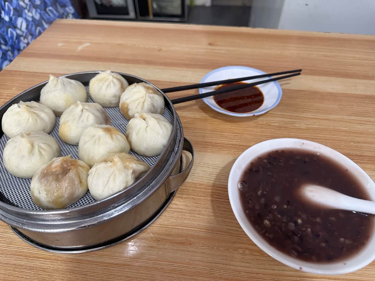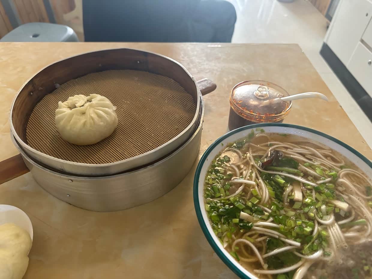 早上在酒泉买吃的。不习惯早上吃牛肉面,还是去找稀饭包子。找到包子店挺难的。