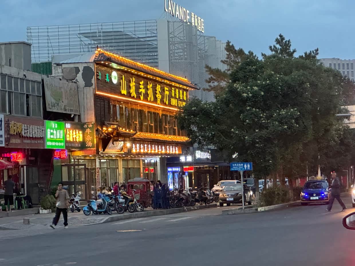 把车停到酒店后,去找吃的