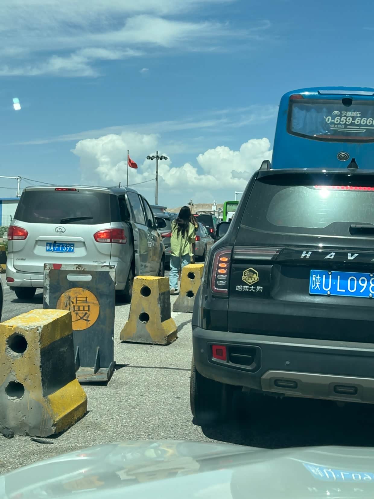 搞不懂为为啥青海的收费站那么多,到处是收费站,青海的高速过路费也是贵,我感觉每公里约0.7元以上。前方两车剐蹭,又堵了。