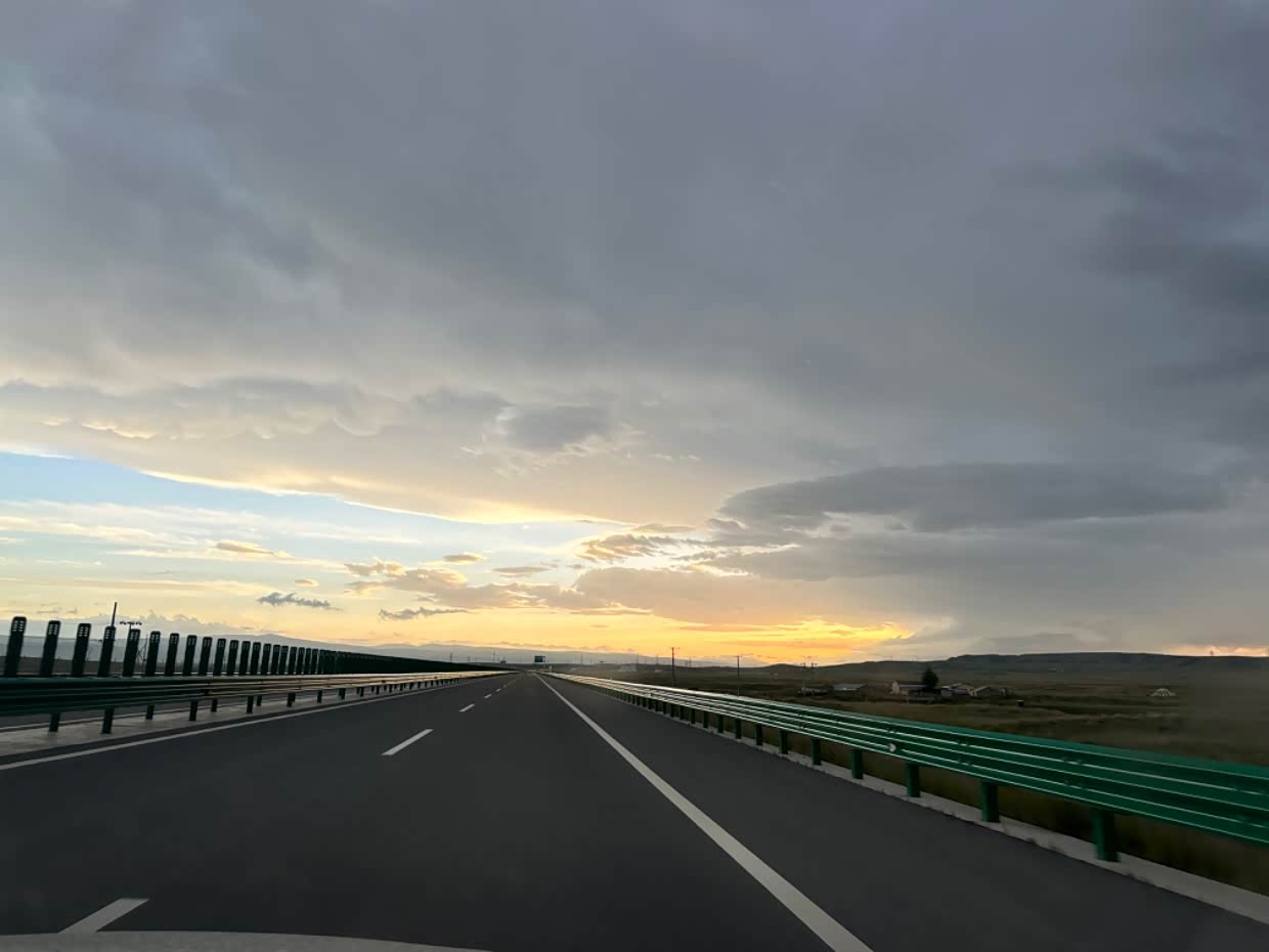 一路伴随日落奔跑,阳光和晚霞太美了,行车过程也来不及拍,一路很美。