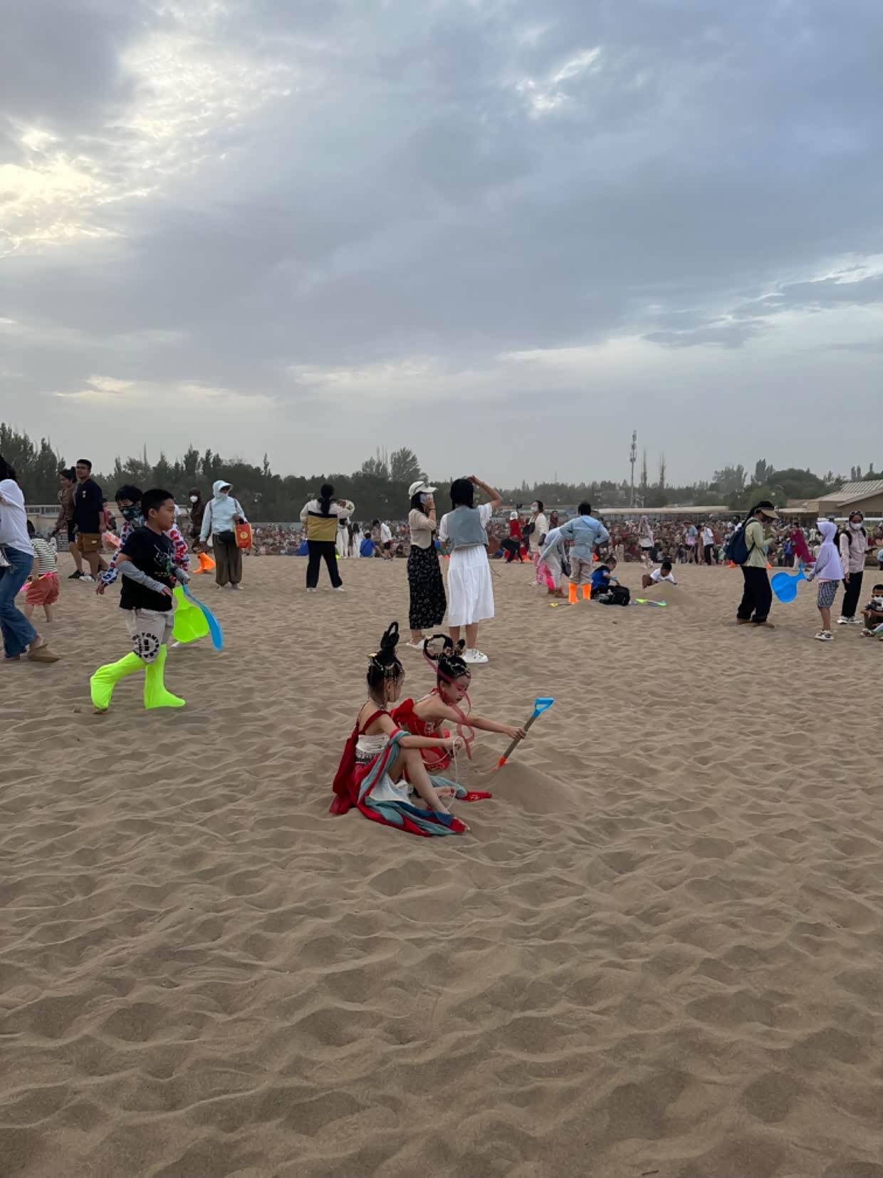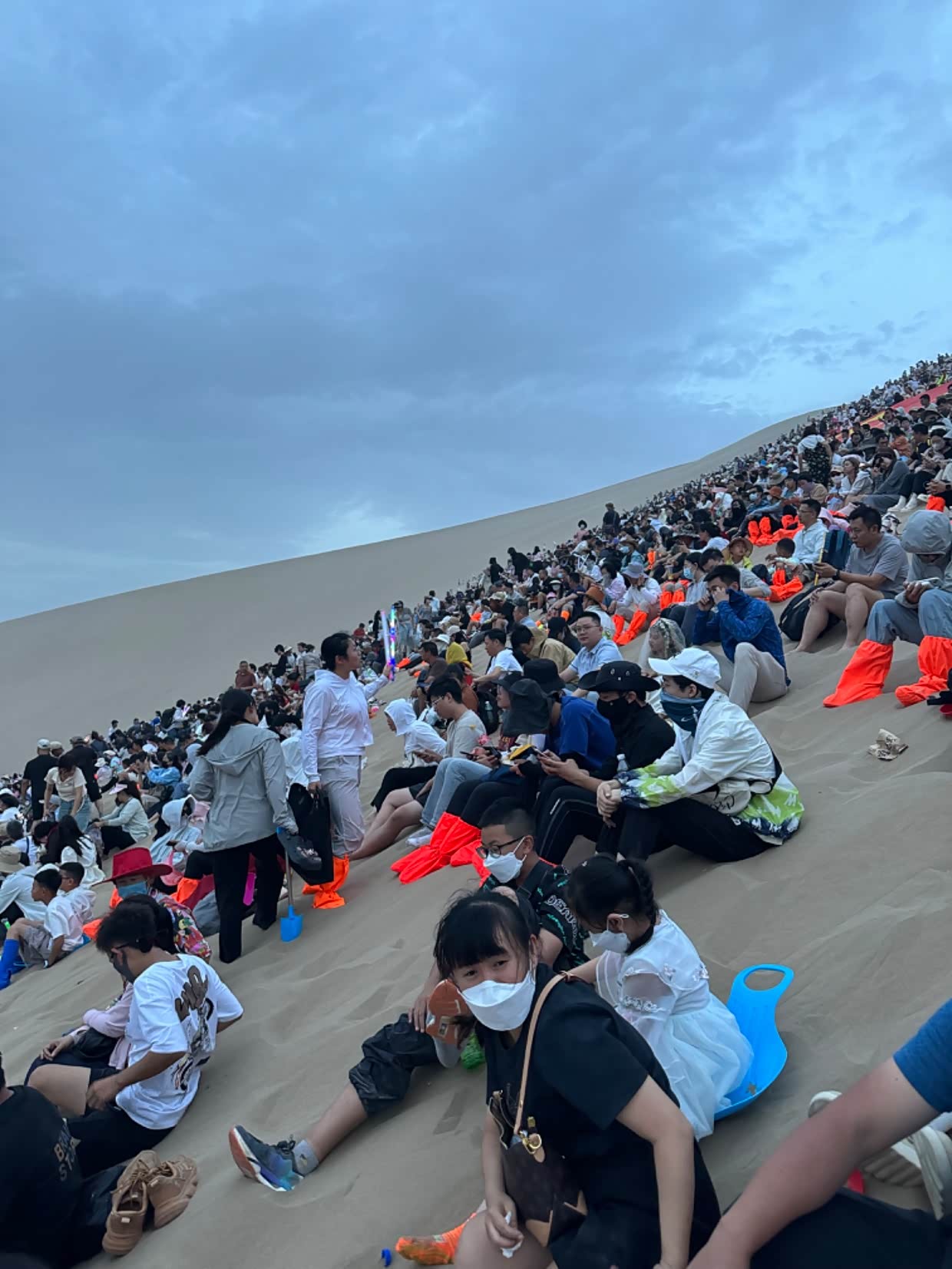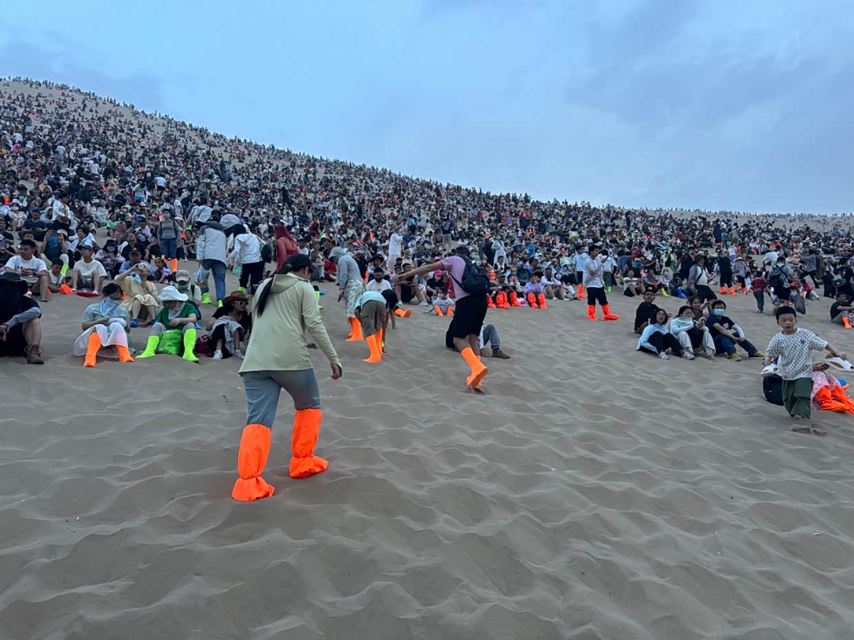 建议去鸣沙山旅游的亲们,一定提前准备几个口罩。风沙来的时候 管用的。回去时候电瓶车继续排队。身上到处是沙子,头发,脸上,耳朵里,都是,这就是精致的朋友圈,狼狈的自已。不过人生就是这样,多种经历未必是坏事,没有任何事情是圆满的,没有完美的,人生就应该 有多种体验。