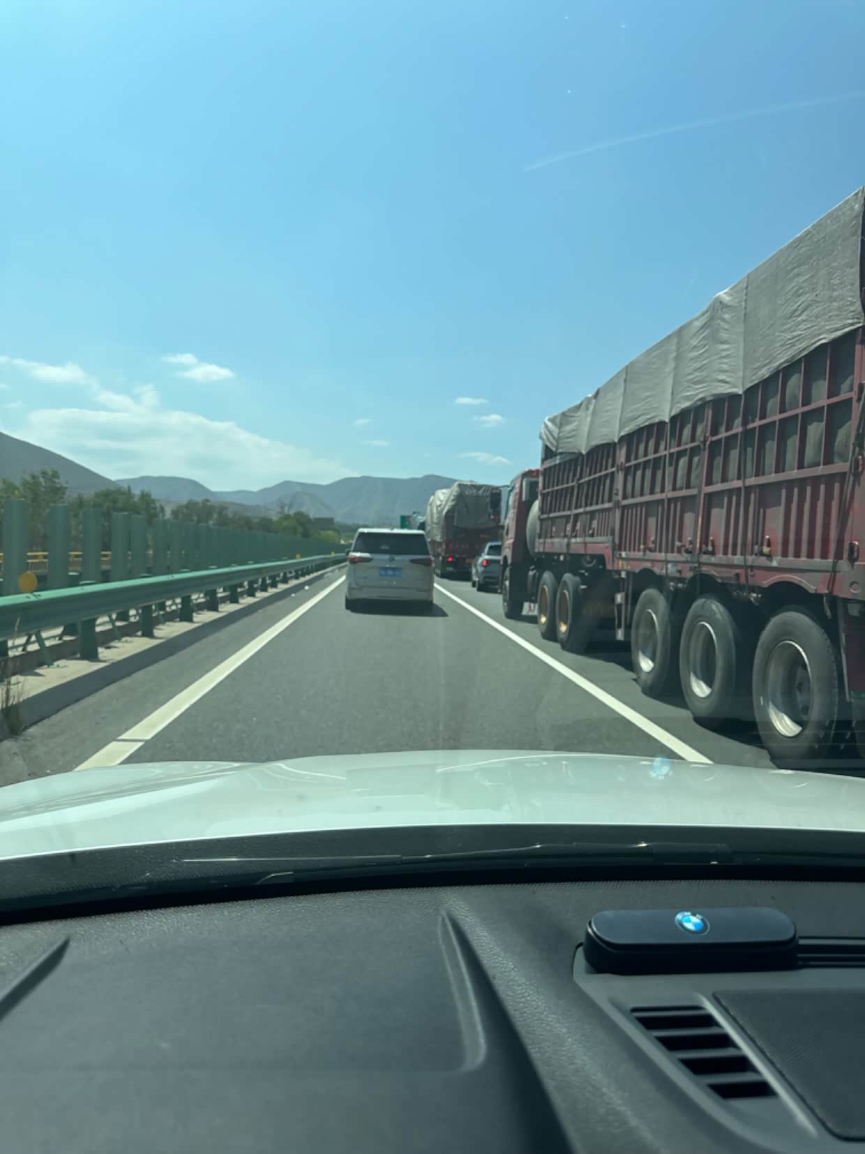 一路上大货车并线不打灯的特别多,还有小车司机,乱并线乱插队的特别多,大部分司机都比较好,堵停的时候都是车祸,小车车祸,有个10连撞。高速公路上保持车距很重要。我是不跟紧前车的,一直保持 距离。