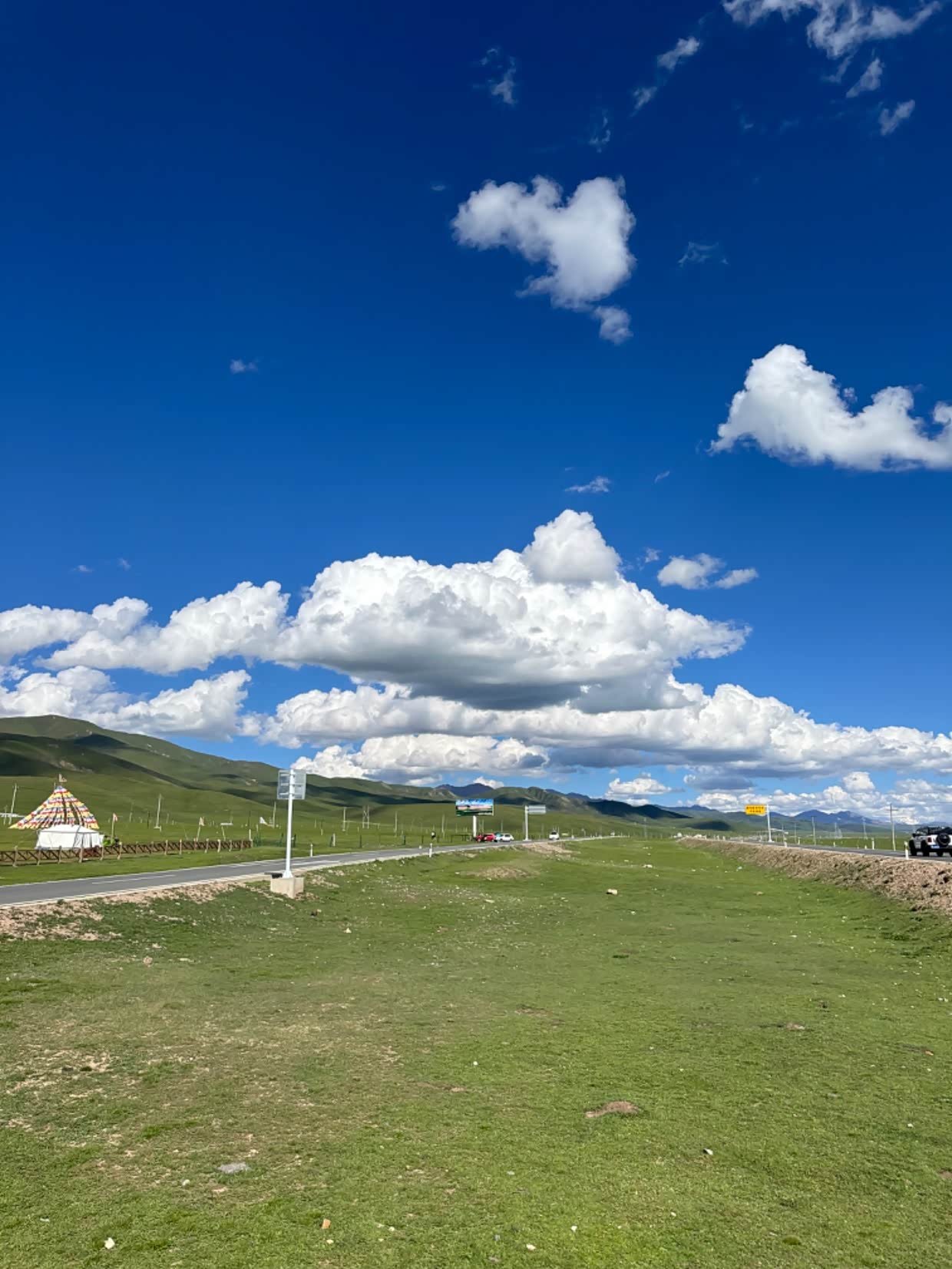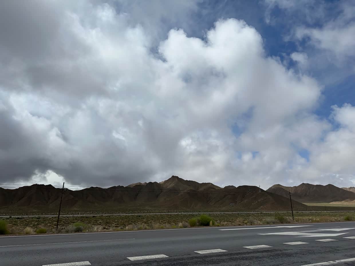 但很快就有了乌云,紧接着冰雹如约而至,大雨伴随冰雹,砸的车顶啪啪的响,头顶还有闪电,第一次在高原碰到这种天气,路上的车也很少,傍晚的天气变化的真的可快。冰雹10多分钟后就结束了,但真的可怕。