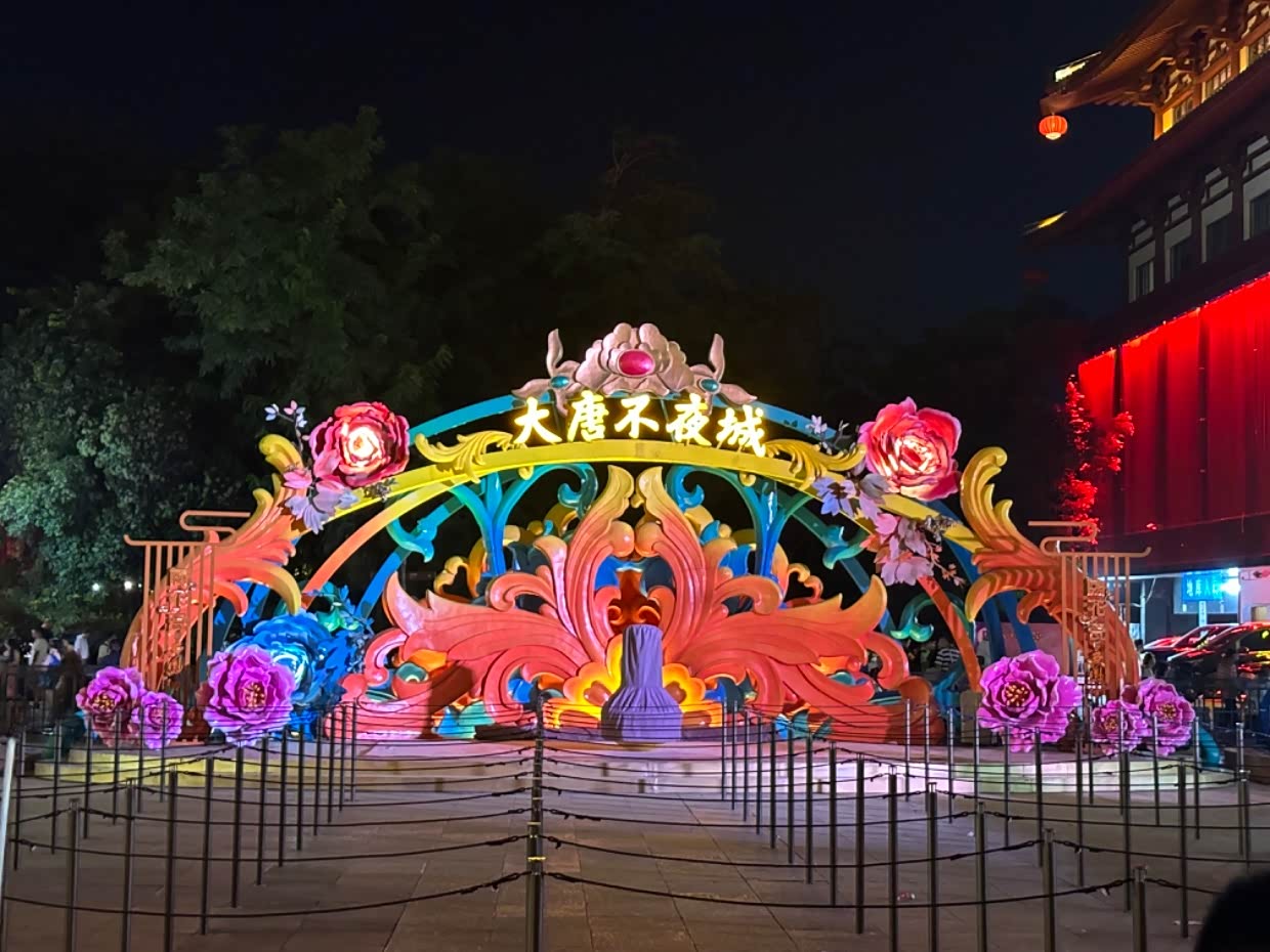 晚上12点了,大唐不夜城人流量还是很大。