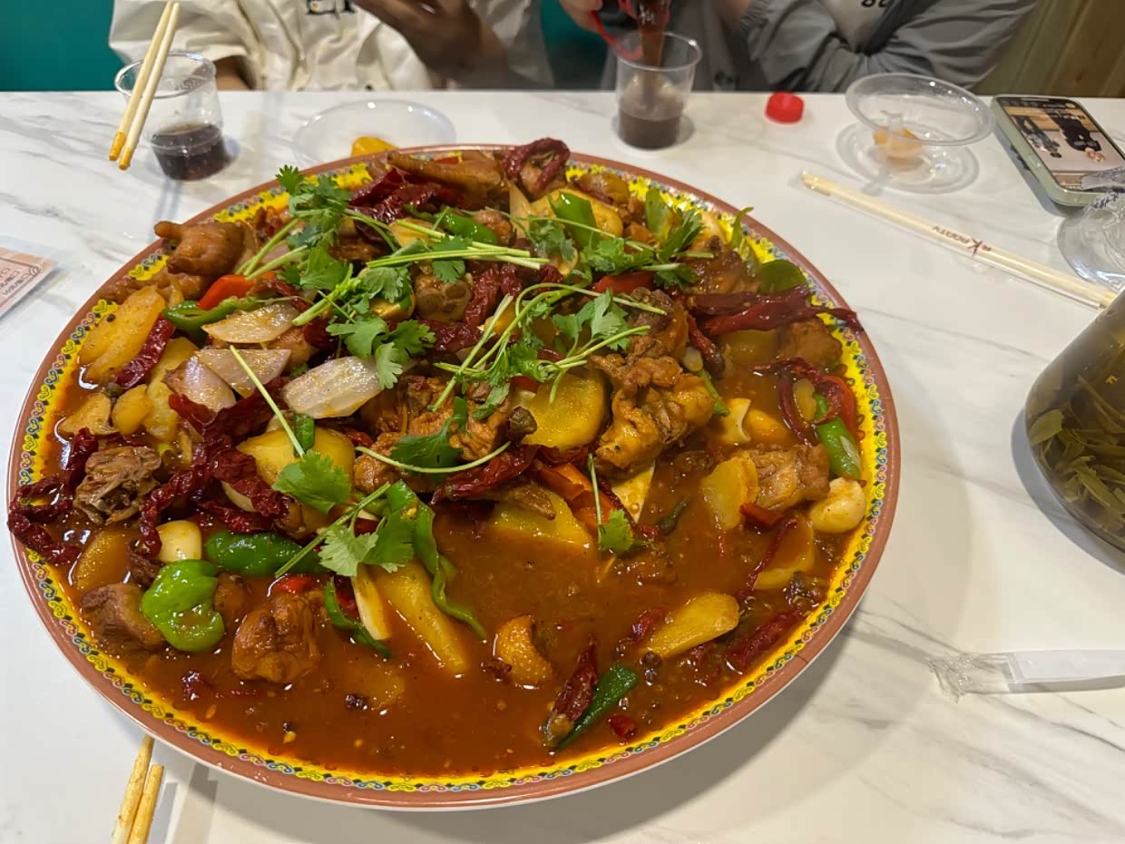 98一份的大盘鸡,吃不完,打包带走后,第二天坏了,也扔了