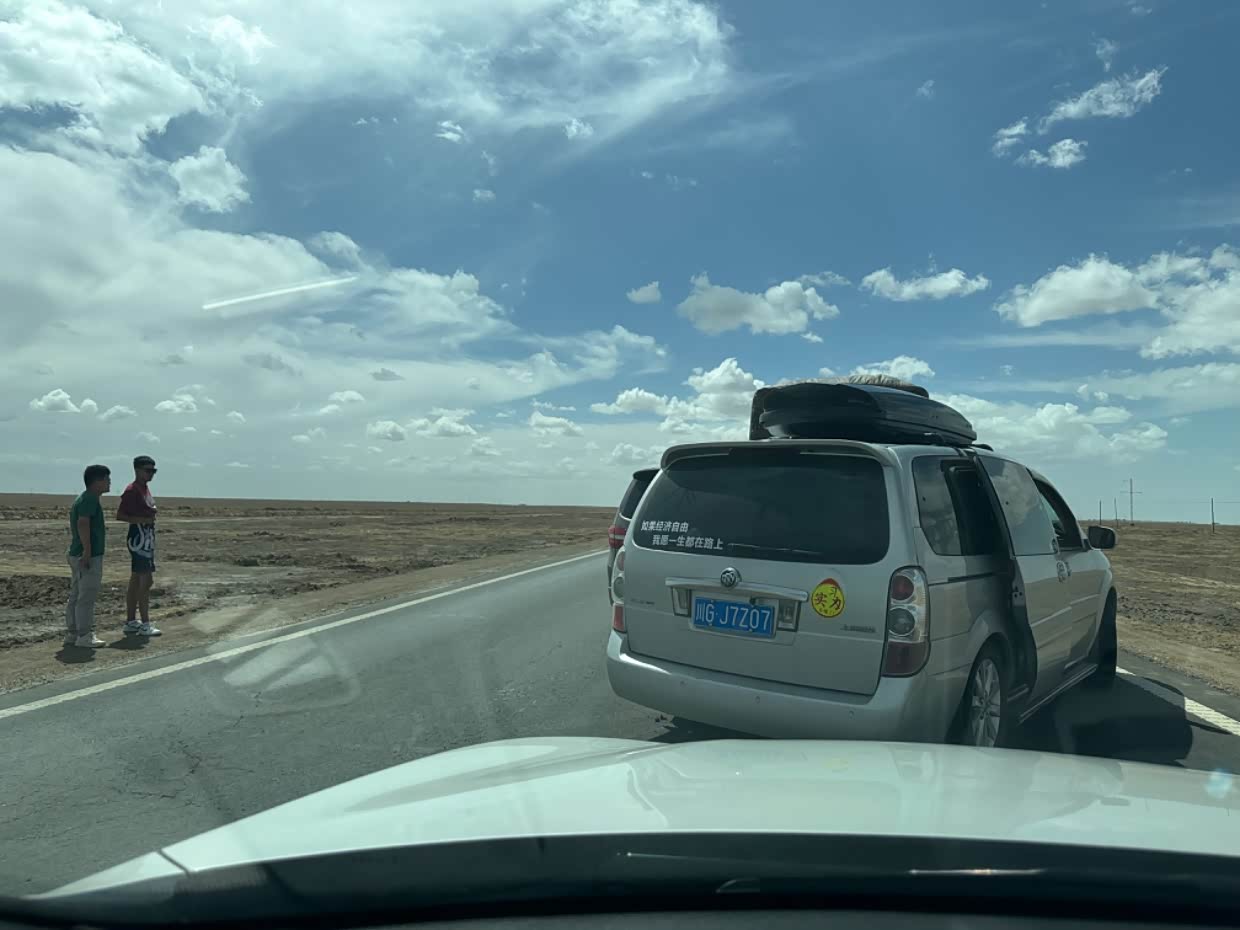 旁边的年轻人加塞。标语不错。如果经济自由,我宁愿意一生都在路上