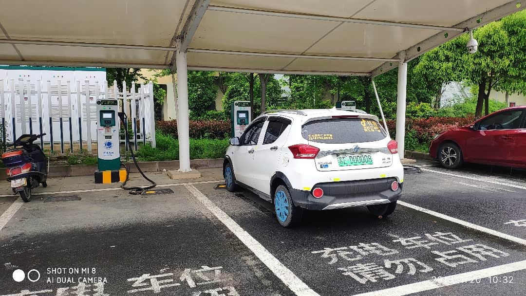 这是在湖州的首创奥特莱斯停车场充电站。