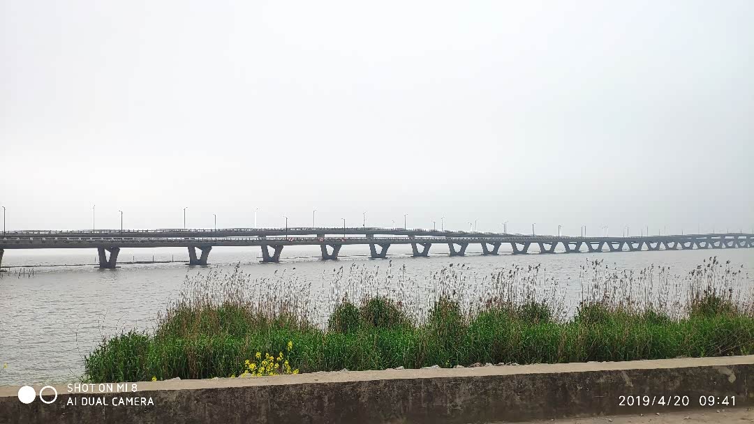这座桥是在太湖的边边上,跨在湖面上的。