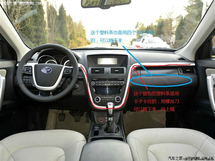导航的安装:前排机舱前的银色U型条可以从驾驶盘一头或右侧开始翘下来,然后就能看到螺丝了,还等什么,自己动手加装导航吧!!!!